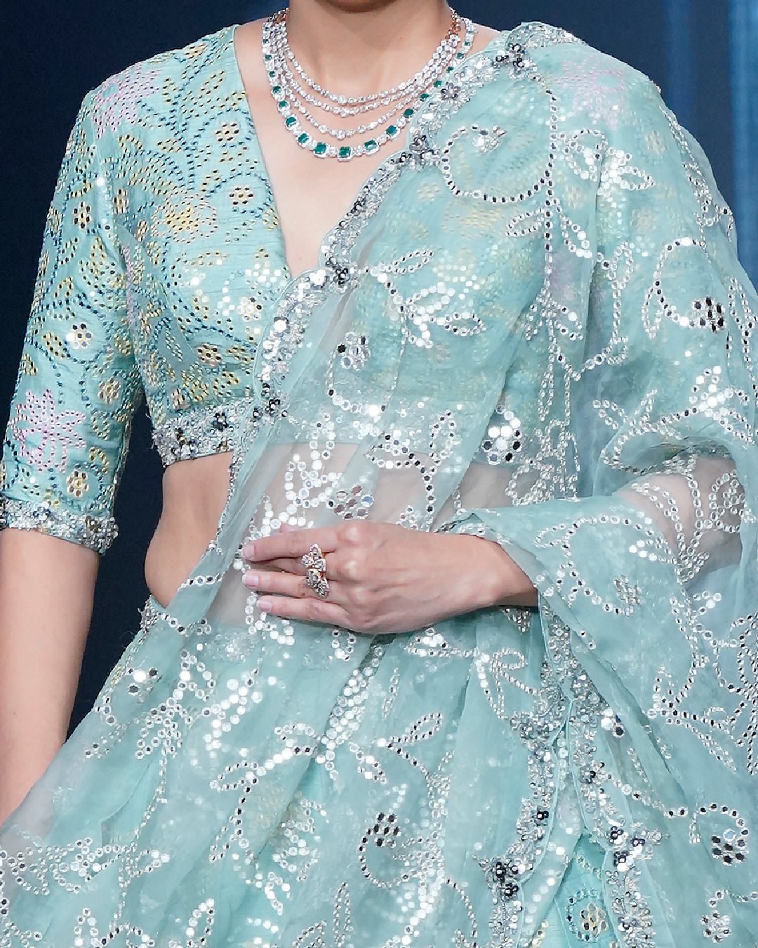• Elegant Pink Sequin Saree